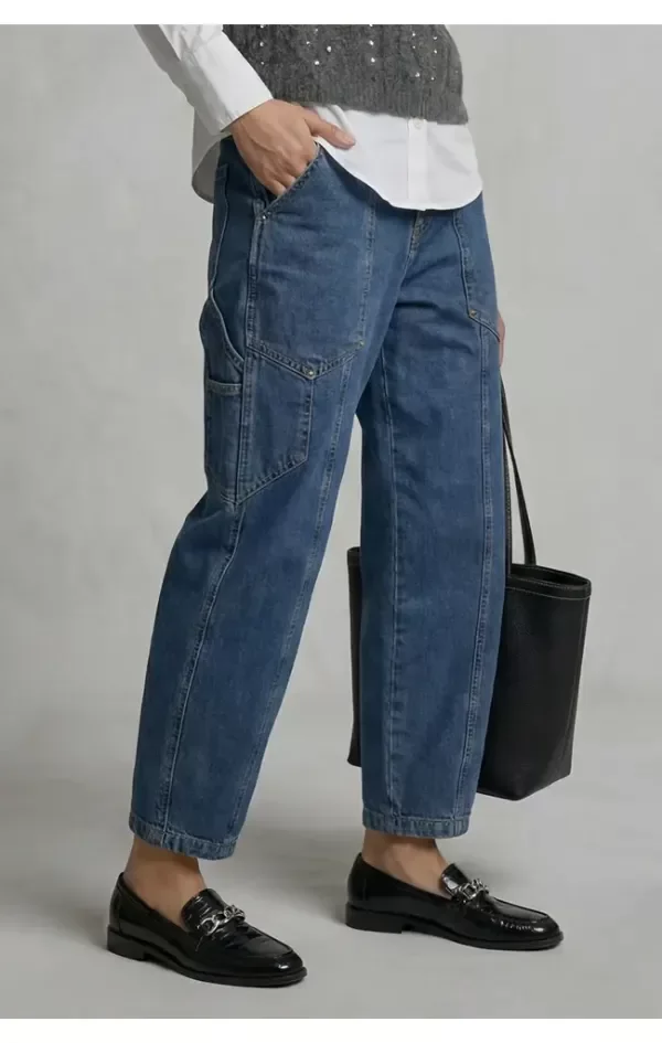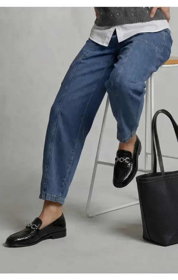 Jean corte Barrel, una silueta contemporánea que redefine el clásico denim. Su diseño se distingue por una pierna amplia con curvatura sutil hacia afuera y un leve ajuste en el tobillo, cadera con volumen controlado, creando un efecto estructurado y moderno